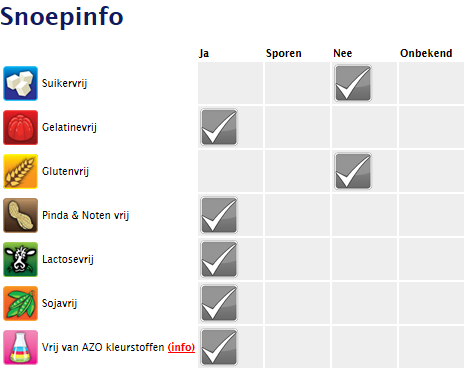 suiker, glucose-fructosestroop, tarwebloem, voedingszuren (appelzuur, citroenzuur), dextrose, palmolie, aroma, [N/A = concentraten] (appel, pompoen, tomaat, radijs), kleurstoffen (E100, E131, E133), [N/A = antioxidanten] (ascorbinezuur, E306).