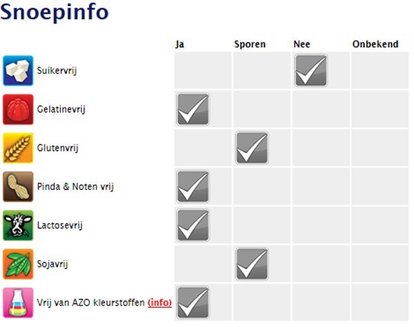 suiker, glucosestroop, maiszetmeel, voedingszuur (E296, E297, E330), water, aroma's, kleurende levensmiddelen (concentraat van: spirulina, saffloer), kokosolie, glansmiddel (E901, E903, E904), kleurstoffen (E100, E120, E171).