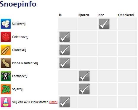 suiker, glucosestroop, zuurteregelaar (E270, E325), aroma's, natuurlijk sinaasappel aroma, fruit- en plantenconcentraten (hibiscus, wortel, vlierbes, zoete aardappel, appel, kers, radijs), geconcentreerde vruchtensap (rode druivensap, zwarte wortelsap), kleurstof (E163, E171, E160a, E150a, E133).