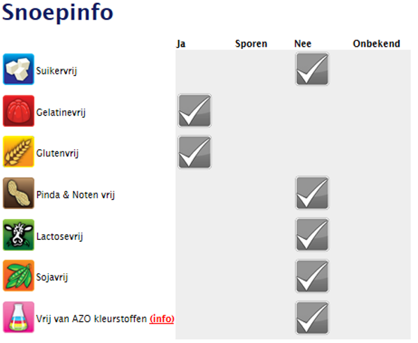 pindas, suiker, plantaardige olie (palm, shea, zonnebloem, palmpit, saffloer), magere melk, dextrose, gehard maissiroop, lactose (melk), zout, Minder dan 2%van: sojalecithine, om versheid te bewaren: TBHQ, citroenzuur; vanilline, kunstmatige kleurstof, om versheid te bewaren: tocoferolen; PGPR, emulgator.