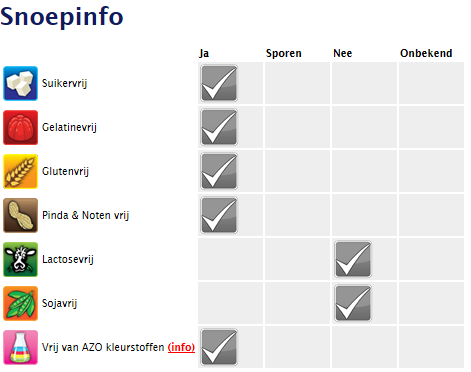 zoetstoffen: isomalt, maltitol, acesulfaam-K; botervet (8%), slagroom (6,7%), zout, aroma's, emulgator: sojalecithine; karamelsuikerstroop, kleurstof: titaandioxide.