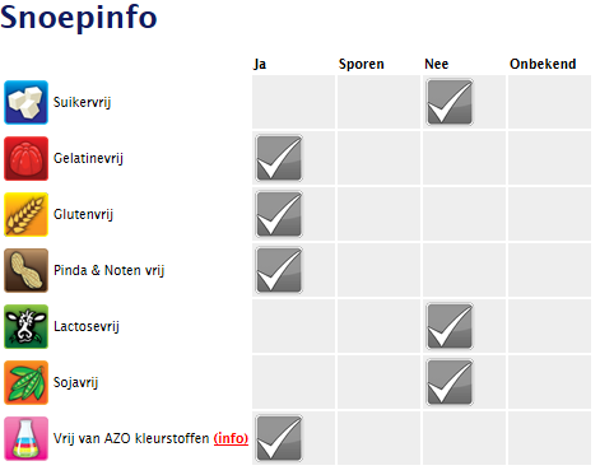 chocoladesmaak coating (53%) (suiker*, cacaoboter, cacaomassa, magere melkpoeder, melkvet, lactose (melk), emulgator: E322*, E476), pindakaas (48%) (pinda's, suiker*, dextrose, zout, zuurteregelaar: E330; antioxidant: E319). * geproduceerd van genetisch gemodificeerde suikerbiet en sojabonen.