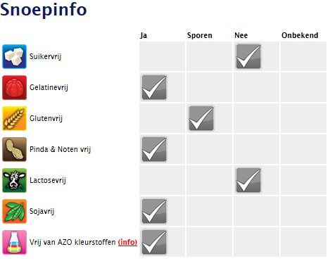 suiker, glucosestroop, roomboter (0,8%), aroma, zout, verdikkingsmiddel (arabische gom), kleurstof (E160a, E120), plantaardige olieen, glansmiddel (bijenwas).